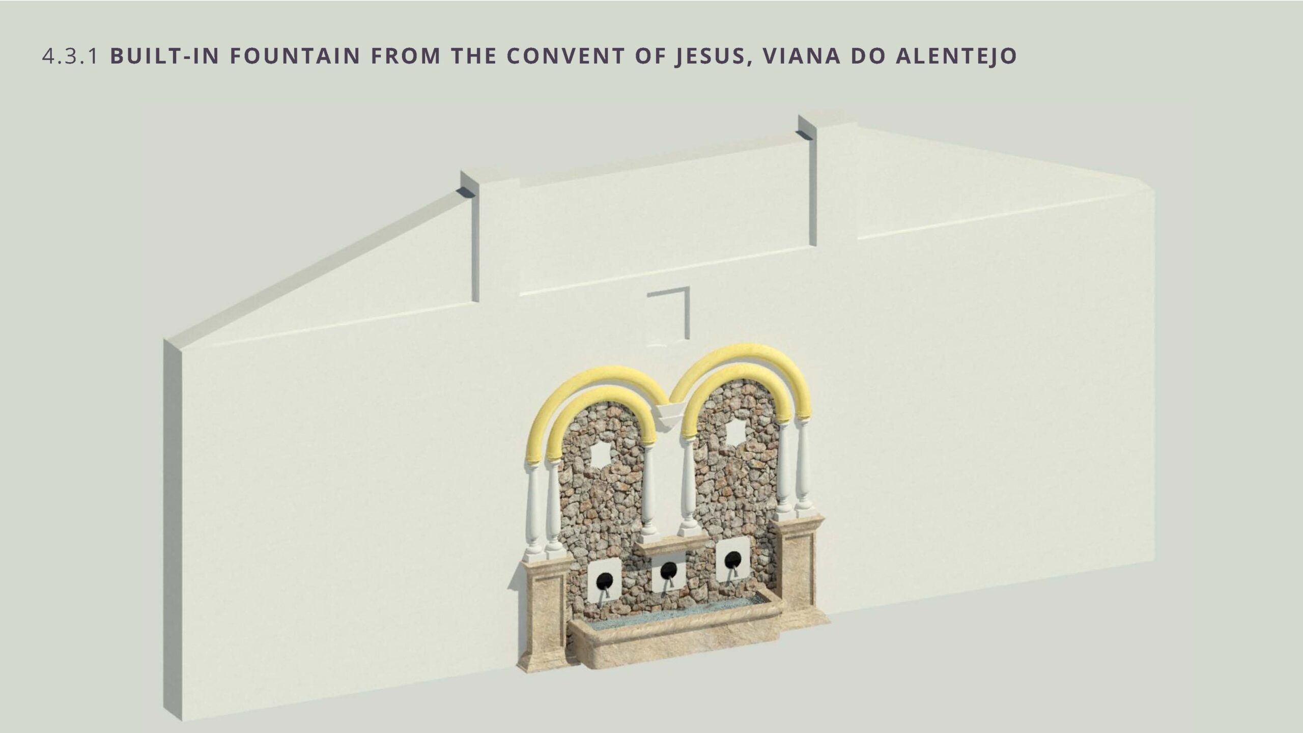 8) Monastic Hydraulic System Modelling and Cataloguing: Expanding the scope of the semester beyond the quinta itself, this research explored a digital approach to monastic hydraulics as a field of research using literature review and case-study comparison of sites around Portugal. The work is organized into three outputs: an analytical report, synthesis maps and a 3D catalogue of hydraulic and architectural components. The team used the opportunity to explore other infrastructure like aqueducts, reservoirs, and water mills that were not part of the work at the quinta. A contribution was the creation of topographic and drainage maps of continental Portugal using QGIS and AutoCAD with available open geospatial data. An HBIM component catalogued aqueducts, reservoirs, fountains, wells, mills, and lavatoriums from several Portuguese sites. Due to the difficulty of accessing the sites firsthand, they resorted to using photo-based proportional estimation to produce coherent, interpretable digital reconstructions for comparative study and educational use. A proposed website format combining Sketchfab exposes the research, allowing for data organization, open access, and communication for wider audiences.